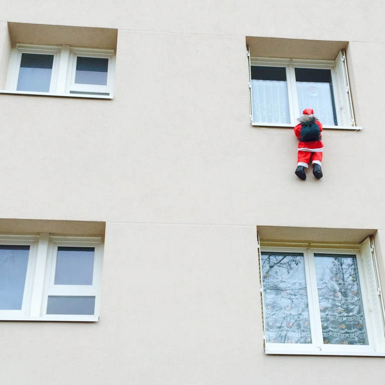 January 6, 2016 Santa Is A Peeping Tom All the rage in France Santa hanging off the sill Guess there’s no chimney ……. Le père de Noël est à l’esprit mal tourné. Share this: Click to share on X (Opens in new window) X Click to share on Facebook (Opens in new window) Facebook Like Loading... Related