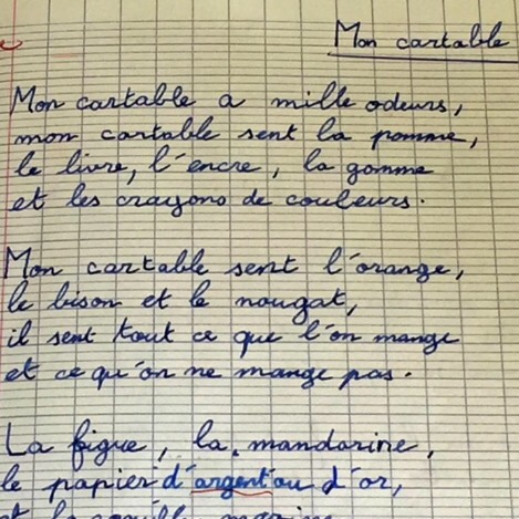 But the trauma must mostly be eventually forgotten because the cahier de poesie is the schoolbook most cherished by both parents and children. It’s a shared national experience that reaches across generations.